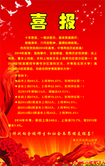 近年来,学校秉承"凤翔九天,志存高远"的凤中精神,践行"群凤和鸣,