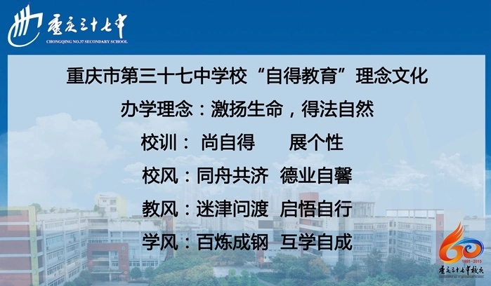 学校校徽由三条竖线以及抽象的阿拉伯数字“7”构成,代表“重庆市第三十七中学”校名;